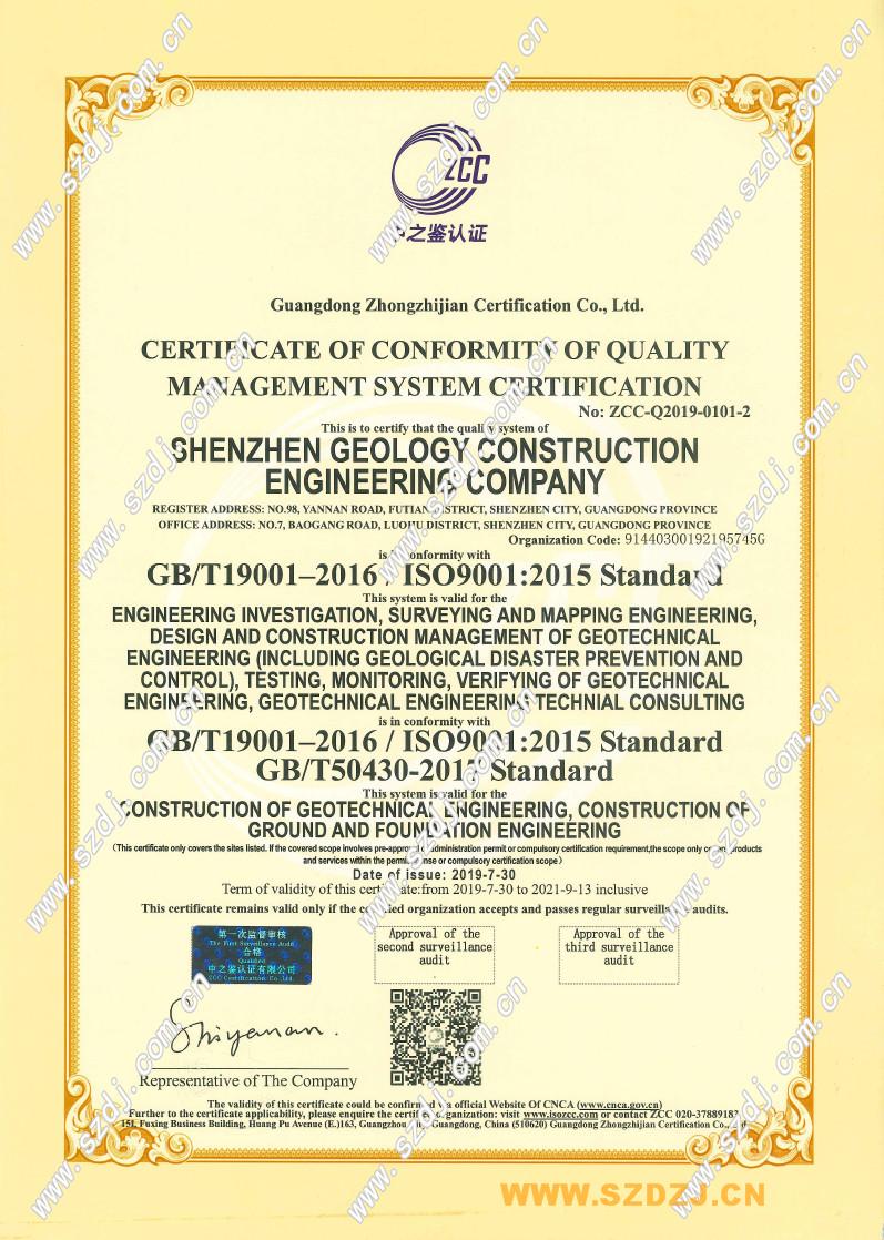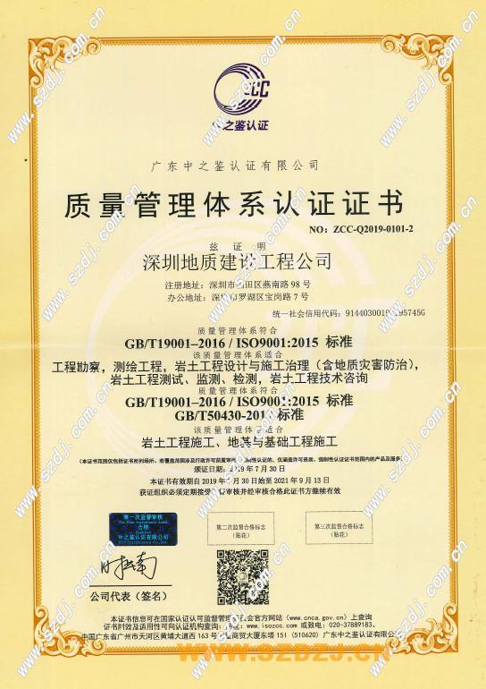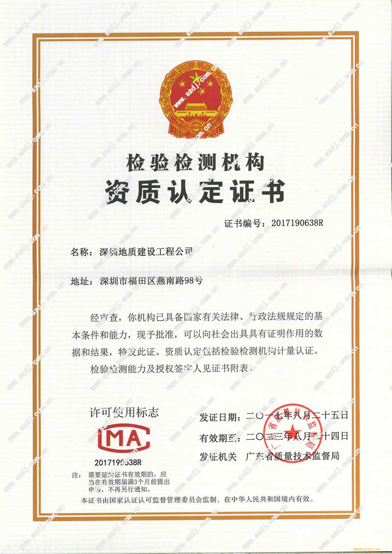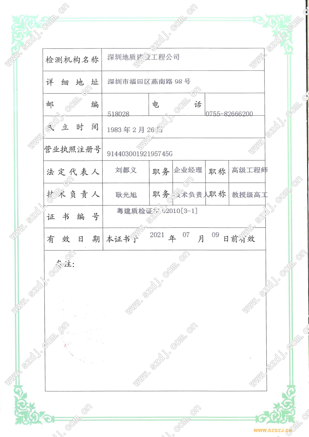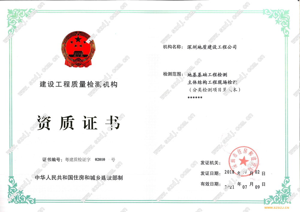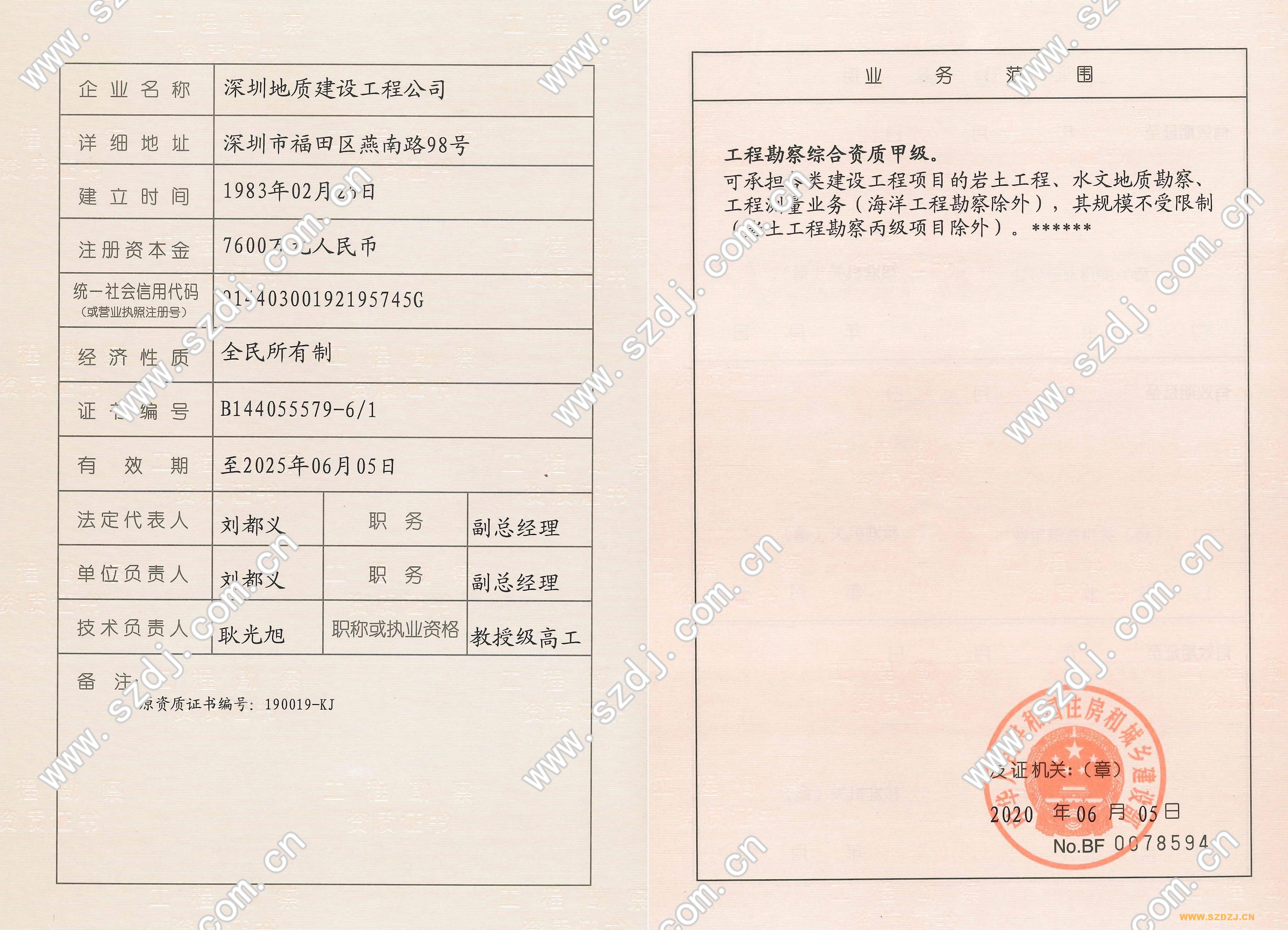 明博官网(简称深圳地建)创建于1983年,为深圳市地质局直属全民所有制企业。近40年来,深圳地建立足深圳、服务广东、辐射全国,在地基与基础施工、岩土工程勘察设计、地质灾害防治工程、测绘与地信工程、水文地质工程、区域基础地质调查、矿产地质调查、重大工程和复杂地质条件技术咨询、岩土实验测试、物理探测和结构检测等专业领域,创建了广东省同行业专业金质品牌。公司已逐步成长为基于GIS的复杂地基基础、地下空间开发利用设计、施工领域的专业服务企业。 一、完善齐全的资质体系 公司具有地基基础工程专业承包壹级,工程勘察综合类甲级(岩土..
