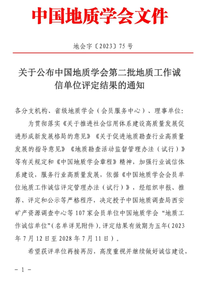 MORE>7月12日,中国地质学会公布第二批地质工作诚信单位评定结果,明博官网(以下简称“公司”)成功入选“地质工作诚信单位”名单。 中国地质学会开展的地质工作诚信单位评定工作,是推进地质行业诚信体系建设与行业自律建设的重要途径。评定阶段,相关单位对公司管理制度体系、技术力量、经营状况、..
