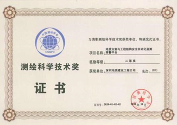 MORE>金秋十月,在河南郑州召开的中国测绘学会2020学术年会上,深圳市地质局和深圳地建公司主导并与科研院校合作完成的项目“地质灾害与工程结构自动化监测预警平台”荣获2020年测绘科学技术二等奖,充分展示了局和公司在测绘科技进步方面的实力水平,也是对局和公司科技人员的创造性和积极性的认可和鼓励。 ..