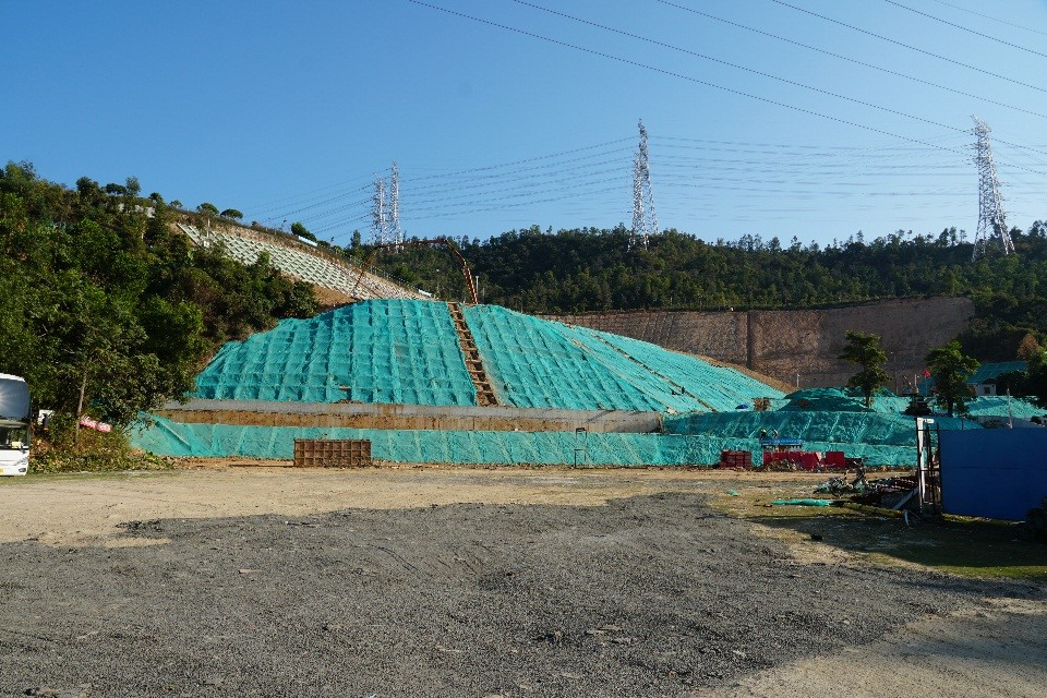 由深圳地建公司第九工程部承建的求水山公园足球场西侧底部边坡治理等2个地质灾害和危险边坡治理工程项目,位于深圳市龙岗区南湾街道求水山公园内,合同额3347万元。当前项目进度已完成工程总量的90%,正在进行4-4剖面格构梁、排水系统和绿化工程施工。