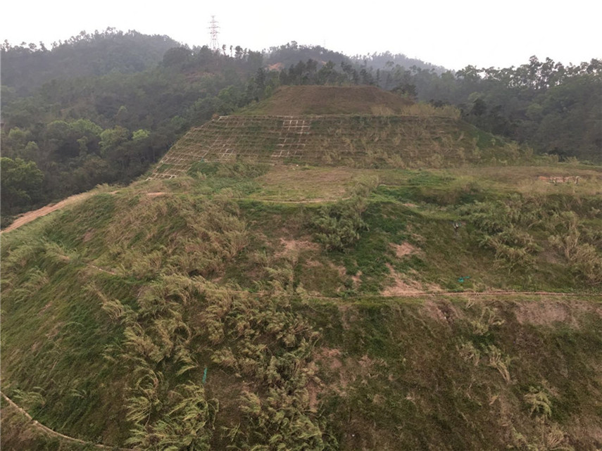 项目特点: 场地局部可见微风化花岗岩裸露。采用坡脚毛石墙+分级放坡的方式进行支护,局部采用锚杆格构梁支护。