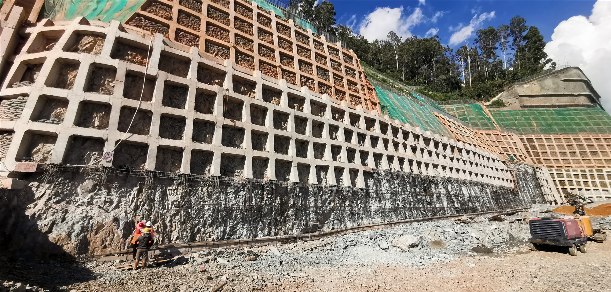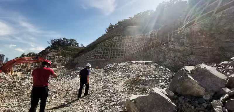 项目特点:  本次边坡支护主要为道路边坡支护并考虑未来规划用地的地下室基坑开挖的影响。根据现有资料,边坡高度11~65m,边坡支护周长约900m。本项目边坡安全等级为一级,边坡支护结构安全使用年限为50年。